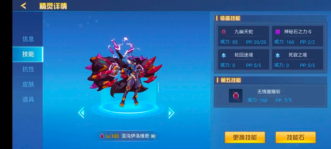 混沌伊洛维奇是我常用的精灵之一,不过在新年环境里它的处境进一步被弱化了——神罗的登场让混沌暗影系、混沌次元系和混沌虚空系都要承受电系的4倍克制伤害,现在像艾夏拉、索伦森这类精灵也越来越多地带上了电系技能石。