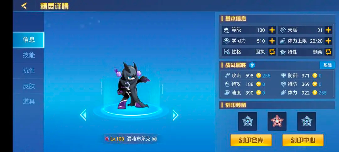 混沌布莱克算是老牌平民战神,和禁灭魔神一样,也是我常用的精灵。它操作和攻略都比较简单,不过挑战混沌形态时老抽不到,建议淘米策划优化下获取方式。刷法推荐攻体或爆攻,针对裂空沧海(裂黄)时,对方通常起手开弹伤,这时候布莱克后手断回合能拿盔,技能高输出还能控害怕,敌方用属性技能时我方免疫一次控制,断回合也能免疫一次伤害。但它怕消强控场,比如项羽和艾夏拉,没次免和免控时容易直接暴毙。特性方面,疲惫抗可以针对天尊的睡眠,睡眠抗能针对艾夏拉;项羽的消强控场是70%概率容易空,而且比较冷门,布莱克两条命不怕机盖,直接对着输出就行。技能石推荐神秘、自然地面:神秘打星皇,自然地面打火王。混沌布莱克打火王时,如果对方刚切出来的回合没靠高伤害控住害怕(竞技中火王大多带害怕抗性),基本就得切走了,特性还推荐强袭或毒特性。