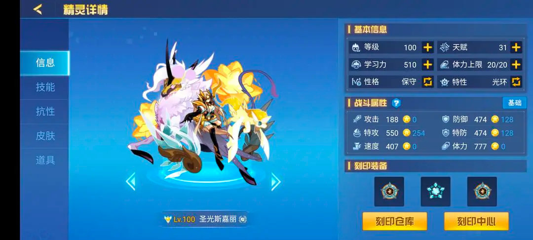 魂印当我方体力低于对方时,使用攻击技能将会造成对方失明,当我方体力高于对方时,我方将会偷取对方的强化类效果,圣光斯嘉丽的被动配合先手技能,如果脸好完全可以当做伪龙威来使用(龙威:游戏玩家之间的术语,指对手的下一回合技能无效)