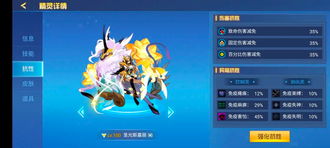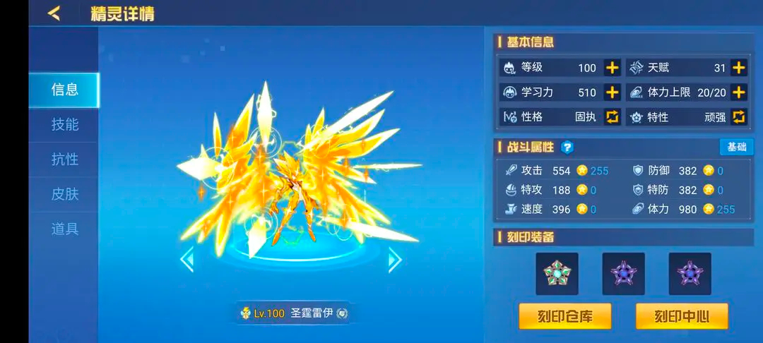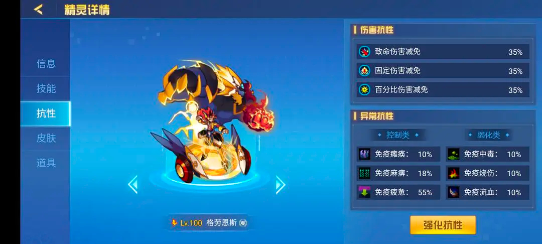 圣霆雷伊是一位集控场、粉伤、红伤与生存能力于一体的精灵,不仅机制出色,属性也颇为优秀,堪称老牌平民战神之一。它的被动效果让所有技能都有概率触发控场,强化技能还附带免断效果——一旦开出免断与免控,面对艾夏拉时基本无需畏惧。其红伤与粉伤输出都相当可观,抗性方面推荐优先选择害怕和疲惫:刷害怕抗性可针对万魔天尊,刷疲惫抗性则能克制混元天尊。而圣灵电属性对虚空、混沌暗影、混沌次元、混沌虚空等属性具备较强的打击压制力。配置上有个小技巧:三枚刻印都镶嵌疲惫宝石,不怕对手控住自己,就怕对手控不住;特性方面推荐强袭、瞬杀或毒特性。