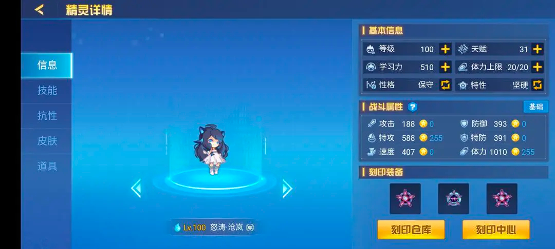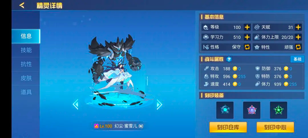 2020年巅峰获取精灵之一,塞娅,属性电暗影对于次元暗影及相关属性拥有较强的压制性,但是由于本身的机制容易被圣甲盖亚直接弹飞,但是作为去年一个获取没什么门槛的精灵,玩一玩还算不错,刷法推荐:攻速,特性推荐:精神,毒特性。