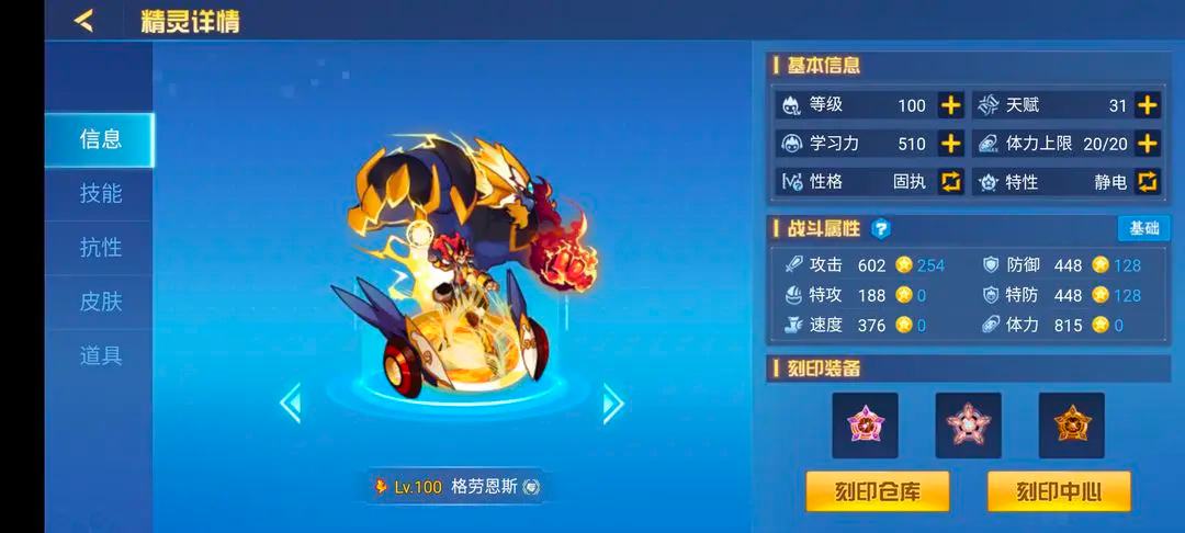 关于配置,我推荐在“火种永存”和150威力技能上各打一颗麻痹或疲惫宝石,这样在敌方水王切换登场,或是星皇切出来的回合,往往能打出意想不到的效果。特性方面优先选瞬杀、毒特性;刷法建议攻体流,爆速玩法对非土豪玩家不太友好,就不推荐了。