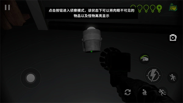 5、点击按钮进入侦察模式,在此状态下,肉眼无法看见的物品和怪物都会显示出来,同时也能直接退出该模式。