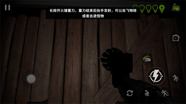 6、长按开火蓄力按钮,待蓄力完成后抬手发射,能够击飞物体或击退怪物。