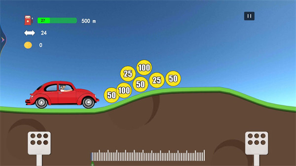 4. 凭借高超的操作技巧,能够使车辆前轮离地腾空,从而触碰到更高处的金币完成收集。