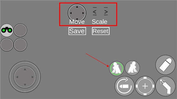 3、进入之后,点击某个操作图标,若显示绿圈就表明该图标已被选中。随后,选择上方的按钮就能进行更改。其中,轮盘用于控制位置,箭头用于控制图标大小。