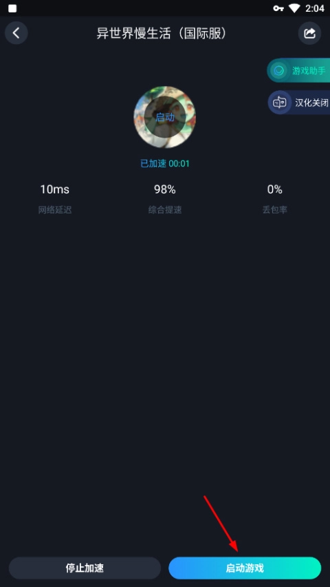 1、在本站下载异世界慢生活手游官方版,游戏需加速器启动,打开CC加速器,找到该游戏,然后点击右侧加速;