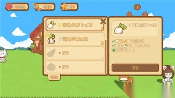 8、接着,前往猫奶奶的店铺,点击委托并在收购萝卜项中点击交付以获取收益。
