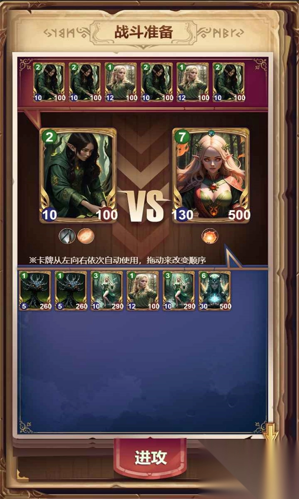 每张卡牌对应不同兵种(像战士、射手、法师之类),具备独特技能。