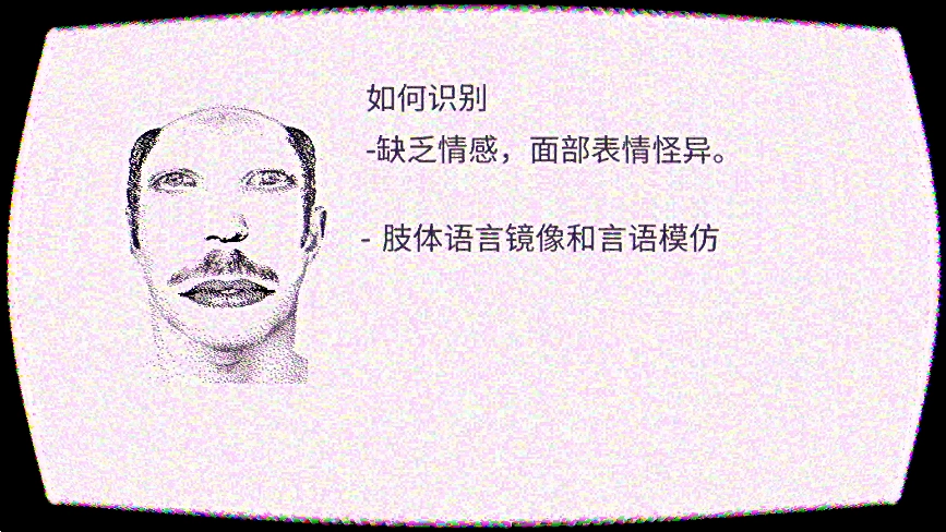 在游戏里,伪人属于虚构出来的非人类生物,它们可以模仿人类的行为与外貌,然而在行为模式、语言逻辑或者微表情方面会暴露出破绽。