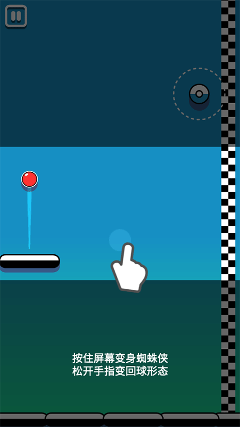 1、在游戏里,玩家只要按住屏幕,就能化身为蜘蛛侠,而松开手指,便会变回球的形态。