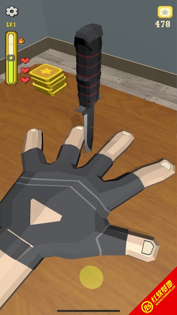 1、来回移动刀具,但是不能刺到自己的手,否则挑战失败。