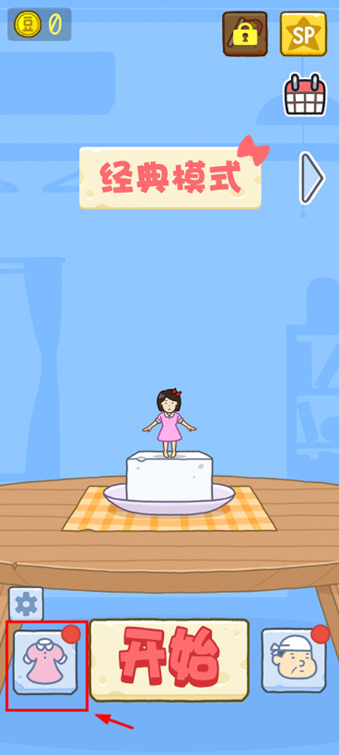 2、这里以经典模式为例,点击开始,进入游戏如图,玩家需操纵豆腐女孩进行跳跃来堆叠豆腐;