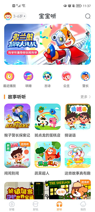 3岁以上儿童:认知百科常识,听童话故事培养专注力,开发音乐艺术潜能,培养安全意识等。