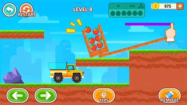 《家中有矿》手机版是一款休闲益智游戏。玩家要在屏幕上画线,助力小货车穿越各类地形,设法将可口的水果与蔬菜毫无遗漏地装入车中。这就需运用你的物理小常识,画出最合理路线,让小货车能收集所有物品。大胆发挥想象力,你会在同一关卡挖掘出无数有趣的解决方案。若遇到瓶颈,游戏下方有关键提示。喜爱这款游戏的朋友,快来下载体验吧。