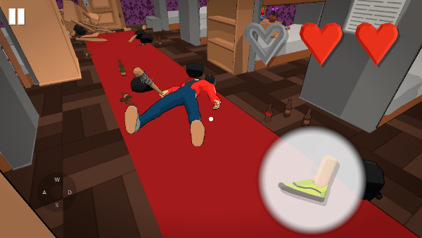 3、探索下一个房间,找到手持棍棒的混混,用你充满愤怒的一脚将其踹死。