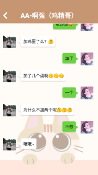 4、然后进入鸡精哥的聊天款,在这里你虽然不喜欢他,但是不能把天聊死,或许他以后有用呢,在他问你吃的蛋炒饭加了鸡蛋时要说加了。
