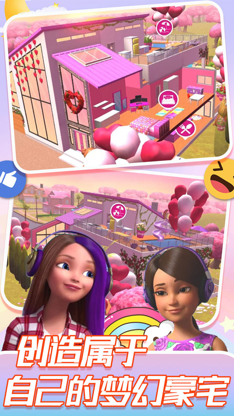 你可以设计每个房间。这里有我的好朋友、狗狗和爱乐沙!快来参加梦幻屋里的各式有趣活动:烘焙、跳舞或经典的泳池派对等!