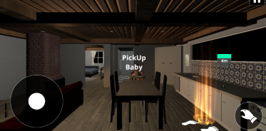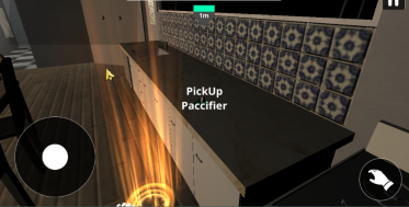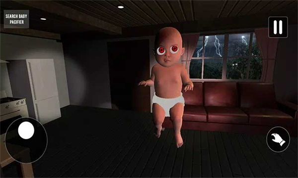 4、游戏操作方面,屏幕左侧用于控制位置移动,右侧负责执行抓起动作,右上角设有暂停按钮。此刻,请走向你前方的婴儿并将其抱起。