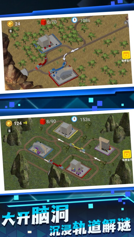 1. 留意铁路的延展方向,借助点击铁路与火车来操控火车的行进及方向。