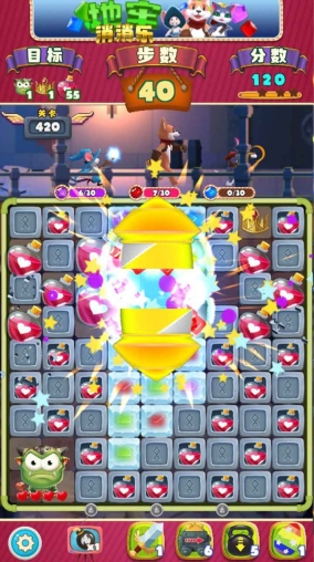 1. 收集钻石并转动奖金轮,猫和老鼠所产生的火箭与炸弹会一直留存,直至玩家匹配到相应颜色。