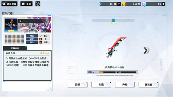 3、武器具备专属特性,可通过更换与升级进行提升。