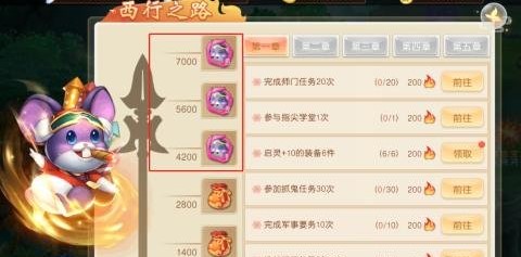升级到75级会开启西行之路,可以根据西行之路上面任务前去完成开启篇章,西行之路分为5章,每完成一章能领取一个礼包,第3章到第5章完成则能领取鼠大王觉醒礼包,对后续培养鼠大王仙兽节省大量的材料。