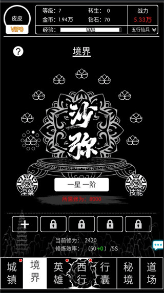 7、不断的提升你的境界,以此来获得更强的战斗力;