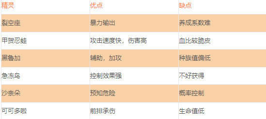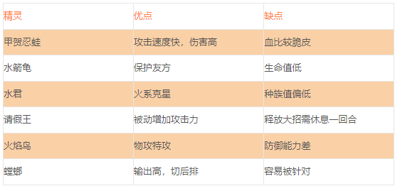 2、输出型:阵容精灵选取多为输出攻速。阵容位置摆放前排:火烈鸟、水箭龟、请假王;