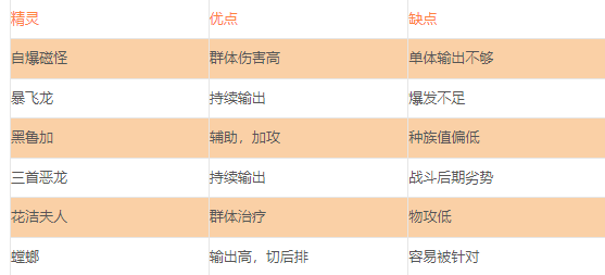 3、群体型:阵容精灵群体伤害高,持续输出。阵容前排:暴飞龙、三首恶龙、自爆磁怪;