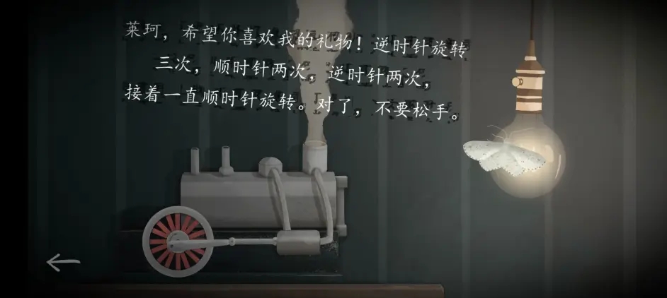 之后回到外场景,我们可以看到上方有辆火车,点击即可进入下一章。