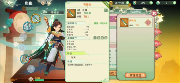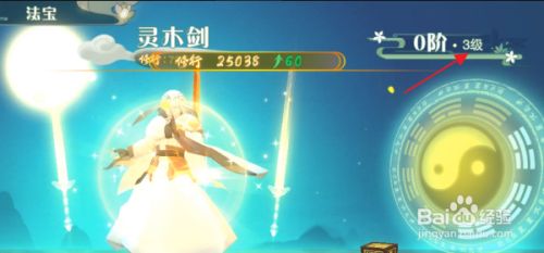 这个时候,我们就升级了法宝灵木剑,提高了修行,我们法宝灵木剑的等级也就达到了0阶3级。就这样,我们就完成了法宝的升级。