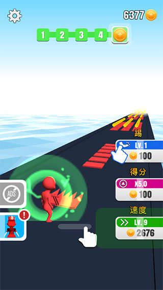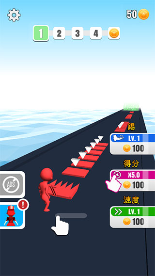 5、收集与小人颜色一样的砖块,如果碰到其他颜色的方块会消减已收集到的方块的数量
