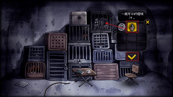 7、接着操控人物,返回第二层,把桌子上的樱桃汁取下来。
