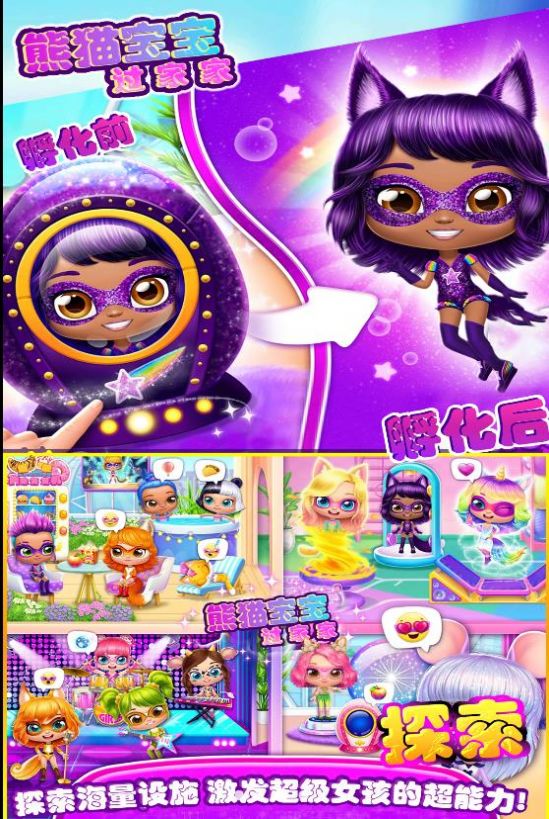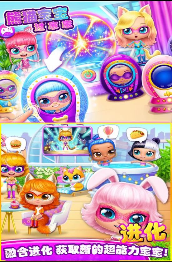 熊猫宝宝过家家是一款超好玩的休闲益智游戏。在这里,你能体验过家家这种有趣的娱乐方式,特别适合小朋友们一同玩耍。游戏里有超多丰富的游戏元素,你可以和可爱的小女孩互动,还有各种不同的宝宝形象。通过融合进化,能得到能力更强的宝宝,它们都是可爱的美少女形象,而且还能对这些宝宝进行装扮哦。
