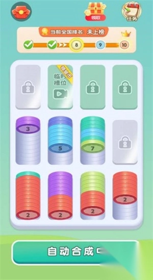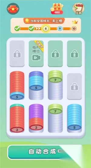 3、即便退出游戏,“宁静点”依然能够持续积累,可用于兑换高级材料,轻松实现无压力的资源增长。1、把相同颜色的金币移到同一个箱子就能合成,操作很简单。