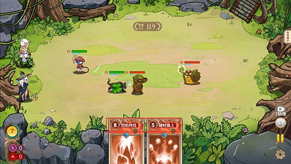 5、进入战斗状态后,对战双方将自动展开战斗,玩家能够点击界面下方的卡牌来释放技能,从而更迅速地战胜敌人。