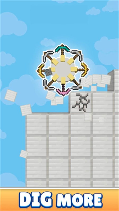 3、渐进式成长体系:通过收集钻石获取收益,这些收益可用于购置更多镐头工具以及进行装备升级。随着你不断推进游戏进程,采矿业务规模将逐步扩大,同时还能解锁全新的等级阶段。