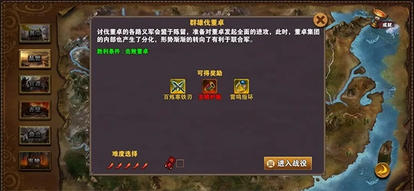 点评:群雄伐董卓这个关卡出卡率很高,缺点费时间开局等待六周