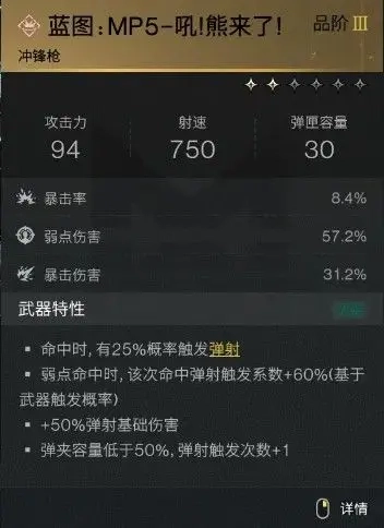 要是想选进阶武器,小七首推的绝对是MP5-吼!熊来了!它的弹射特性对付扎堆敌人时效果最好,只要瞄准血最厚的那个猛打就行!不过这可不意味着它只能打群怪,MP5本身的高射速和稳定性,能让它精准对准怪物弱点快速输出大量伤害。