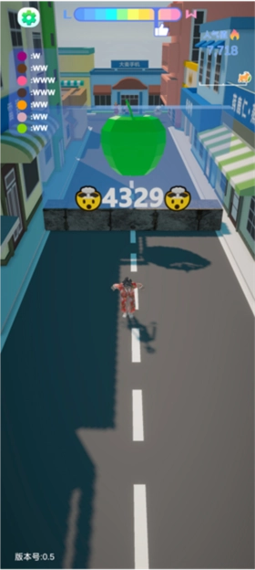 3、在跑道里通过左右滑动来操控甲亢哥前进,与此同时还得避开路上遇到的路人。