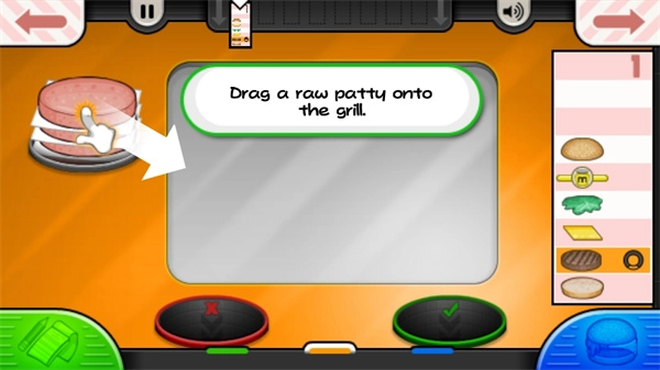 7、接下来我们就能按照指引进入制作界面,在这里启动汉堡的制作流程。