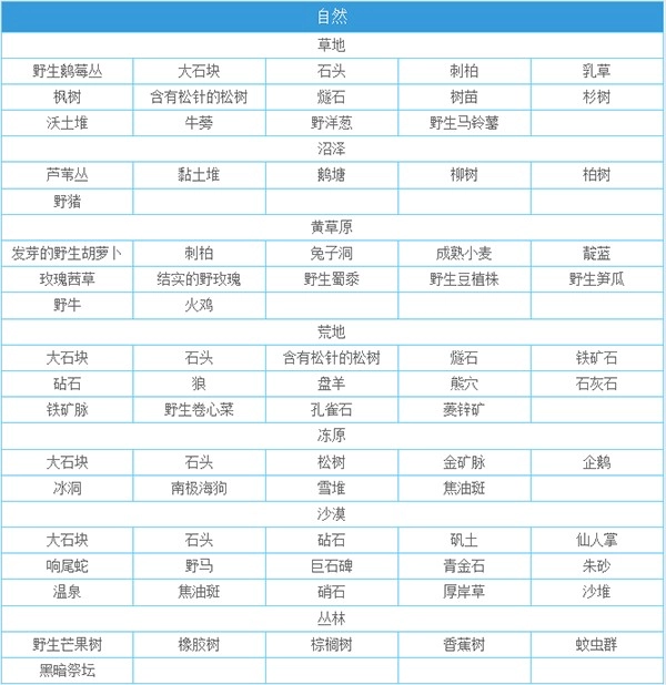 在游戏里,环境是影响玩家能否生存下去的关键因素之一。《一小时人生》的自然环境主要分成七大区域,也就是草地、沼泽、黄草原、荒地、冻原、沙漠和丛林。接下来,我们就一起看看这些区域里都有哪些能帮助玩家生存的资源吧!