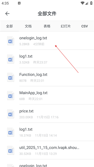 4、在全部文件列表中,选择需要上传的文件,即可完成文件导入。