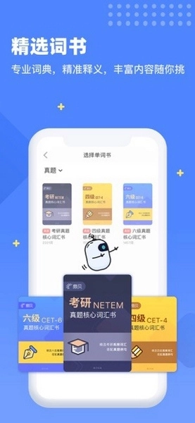 扇贝单词英语版是一款实用便捷的英语单词学习工具。它面向不同阶段的英语学习者,提供针对性的单词学习课程,助力用户学习、记忆单词,掌握其含义、词性及用法,进而提升英语水平。用户可依据自身学习进度挑选适配的词库,还能下载词库实现离线学习,无网络时也能使用单词书背诵。除词库外,软件整合了近几十年各类英语考试的真题与模拟题资源,涵盖四六级、考研等,通过智能系统提取高频词汇,尤其是近年高频词,围绕这些重点词汇开展强化训练,帮助用户把握考试核心。同时,平台设置了多样化的记忆练习形式,从单词到短语短句,融入关键知识点,让用户从发音、拼写到语境运用全方位强化重点词汇记忆。