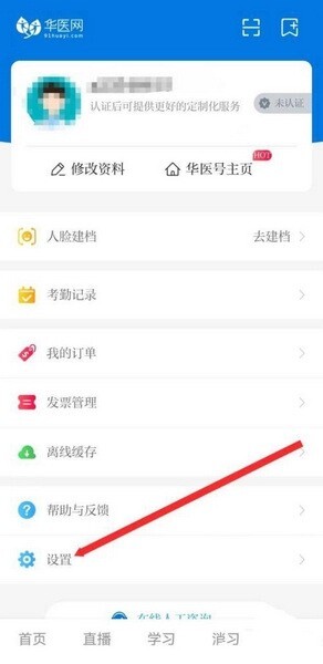 打开掌上华医,进入之后,点击设置选项。