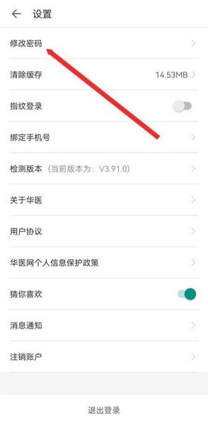 3、选择【修改密码】选项,点击即可。