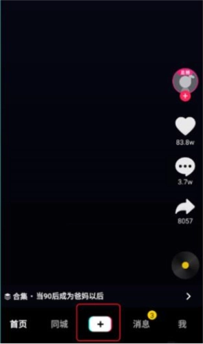 1、运行抖音软件,点击首页中的“+”标志,进入视频录制界面;