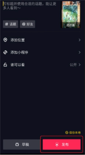 4、之后编辑好文字、话题、位置等,点击“发布”;