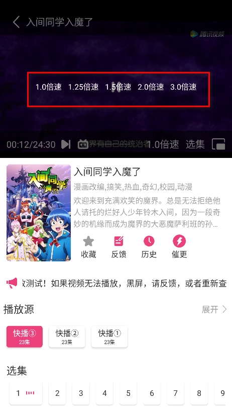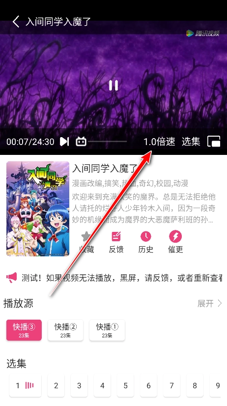 2.进入动漫播放页面,点击1.0倍速
